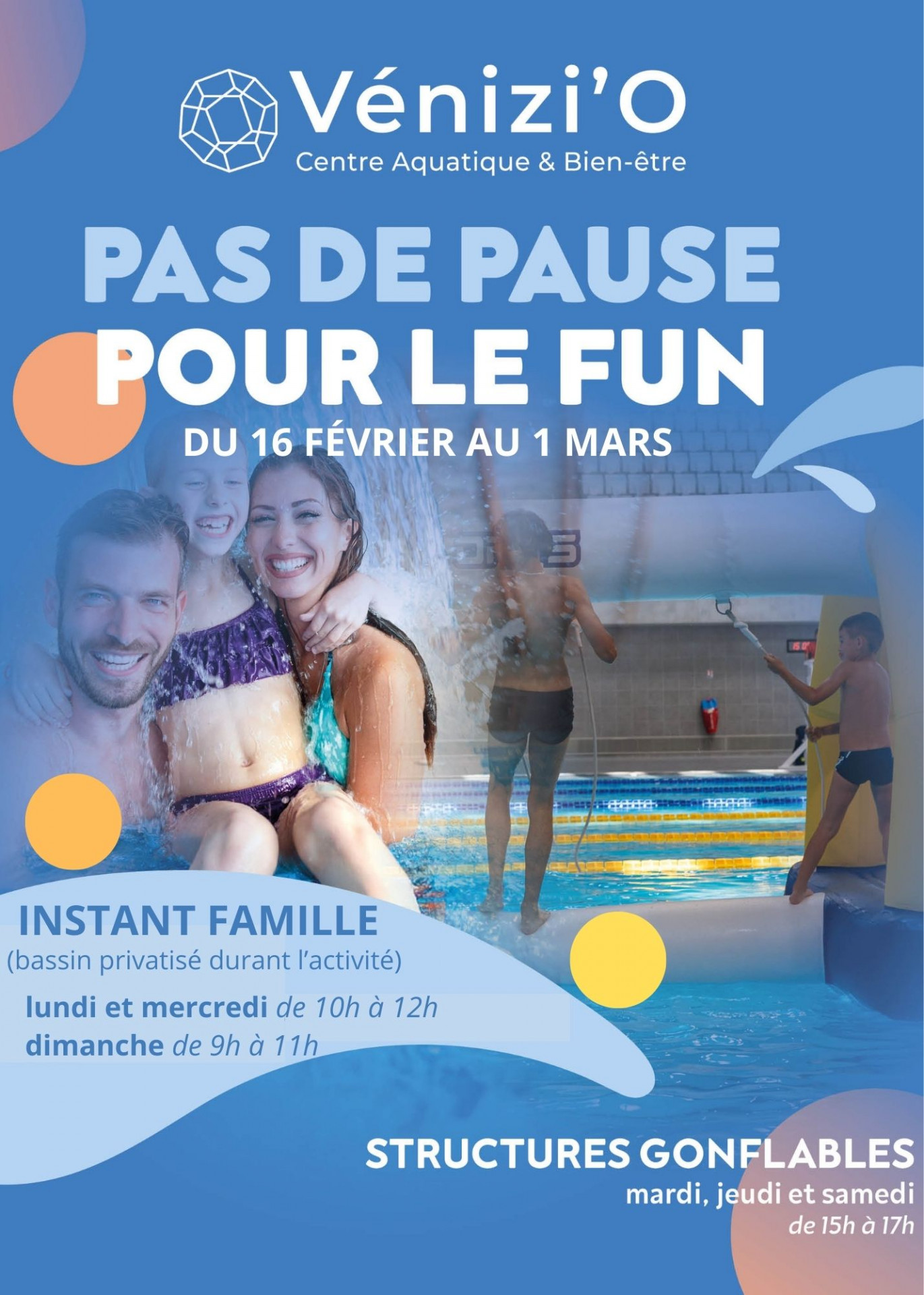 Aux beaux jours, son toit escamotable s’ouvre pour profiter du plein air tandis que le Splashpad et la terrasse extérieure, offrant une vue imprenable sur le parc arboré et la rivière, font également le bonheur de tous en période estivale.