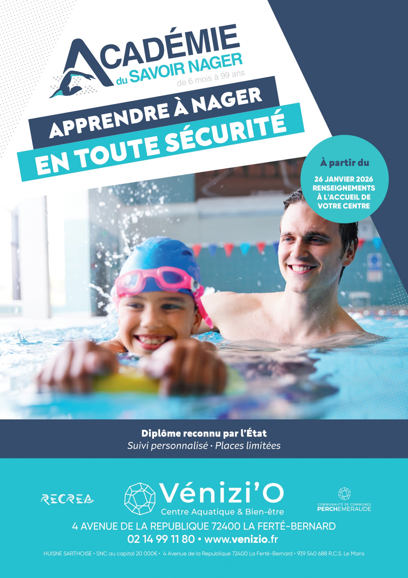 Je découvreSitué au cœur du centre-ville de La Ferté-Bernard, dans le parc Georges Desnos, le tout nouveau Centre Aquatique & Bien-être Vénizi'O offre des prestations qui permettent à tous de s’épanouir dans un cadre moderne et innovant.