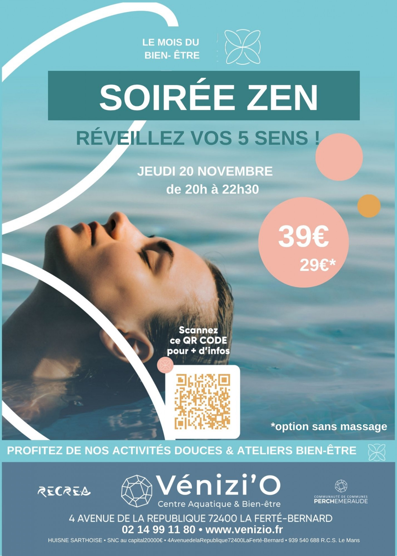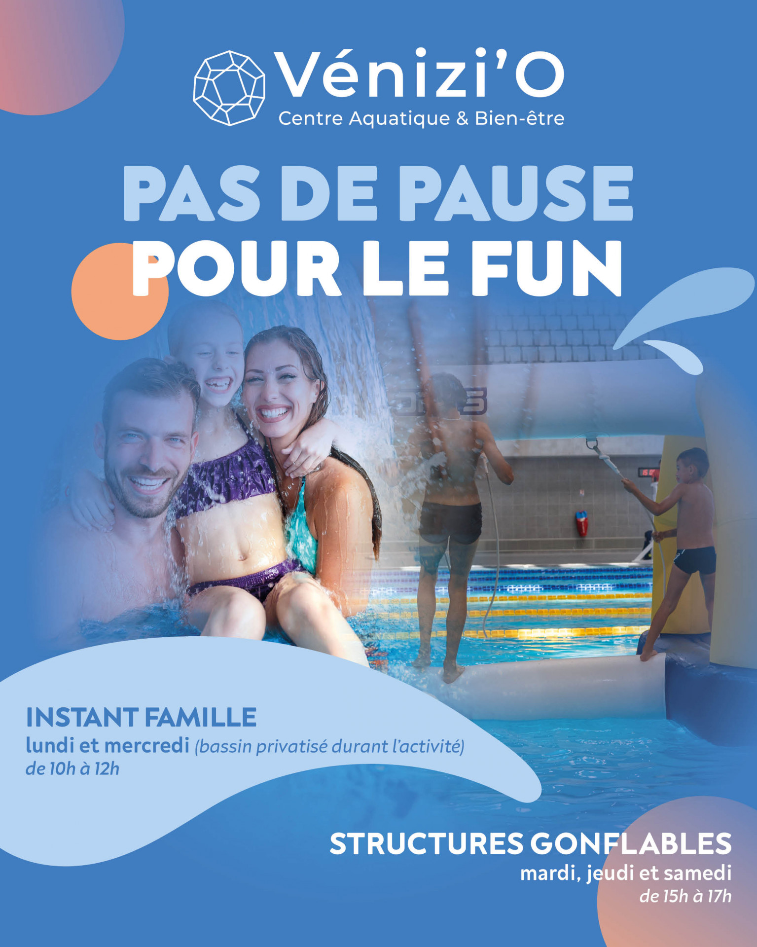 Bien-être : 10:00 - 20:00 | Bassin sportif : 10:00 - 20:00 | Bassin ludique : 10:00 - 20:00